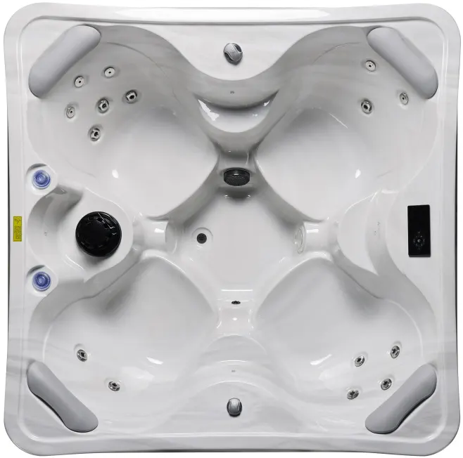 NordicSpa Nyerd с размером чаши 1,8 x 1,8 м идеально подходит для установки как в помещении, так и на улице. Компактная квадратная форма с четырьмя эргономичными подголовниками комфортно вмещает до четырех человек, создавая уютную атмосферу для отдыха и общения.